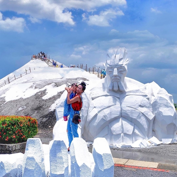 雪白的山峰聳立在濱海處,成為七股相當知名的地標,近年來固定舉辦的鹽雕活動總是人聲鼎沸,在山頂上都會放上巨大的吉祥物,從一開始的招財貓,到天使一直到近年的可愛貓頭鷹,都讓遊客卯足勁登上鹽山只求能更親近這些可愛又巨大的吉祥物,置換主題之後吉祥物就會安置在鹽山園區內繼續陪著前來遊玩的旅客們!