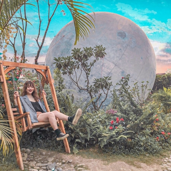 有著夢幻森林稱號的「多肉秘境」是專賣多肉植栽與DIY教室,用心規劃的庭園裡有許多種花草植物,其中最吸睛的就是像太空艙的透明泡泡屋,有4公尺寬,還有這顆巨大月球,直徑約6公尺,就好像闖入了夢想中的仙境,好好拍啊!