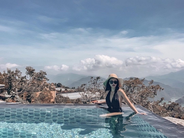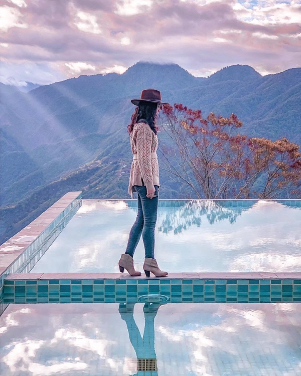 位於海拔1750公尺高的民宿,周遭環繞著美景,裡面有各種休閒娛樂設施,最吸睛的是這個無邊際泳池,走在池畔偶爾用腳尖戲水,非常愜意,而且這邊真的是怎麼拍怎麼美欸!