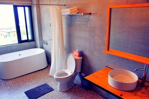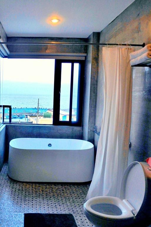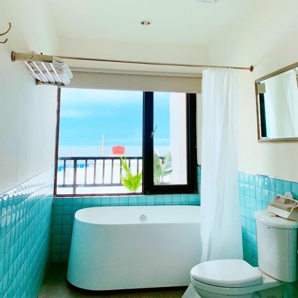 沒想到吧~民宿的浴室竟然也是大家超愛拍照的地點之一,憂鬱的藍色色調搭配窗外海景,畫面看起來絕對包你滿意。