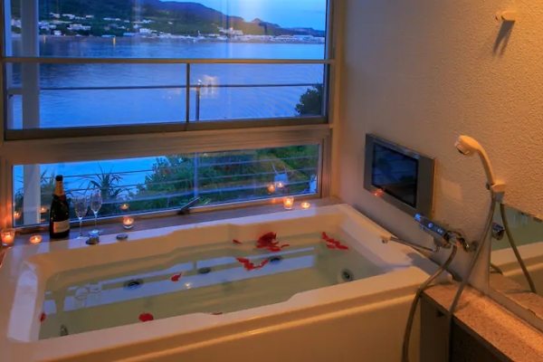 大家都知道日本的浴室都超小吧~這間竟然還有海景的浴缸!!!光是這一點就非住不可。