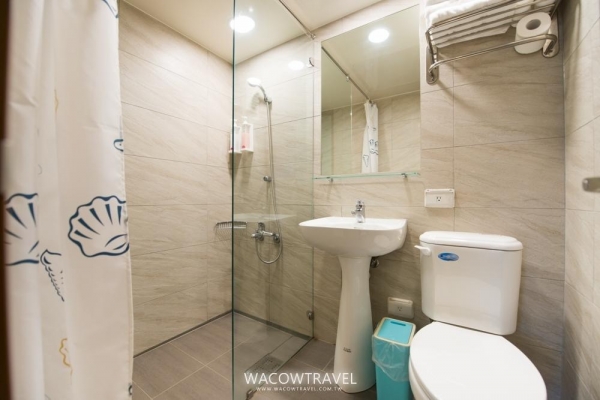 浴室乾淨又舒適,且設備都樣樣齊全,外面還有個專屬的小陽台可以觀看近六十坪的園區,還能與好友悠閒地坐在這邊賞日落,實在是太浪漫啦!