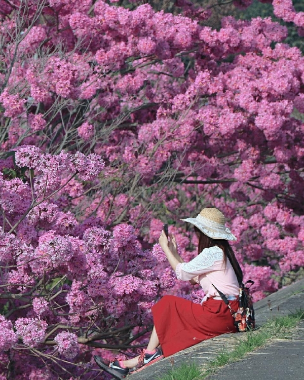 除了櫻花有這種超浪漫的粉色世界之外,其實這種洋紅風鈴木也可以很羅曼蒂克啦~