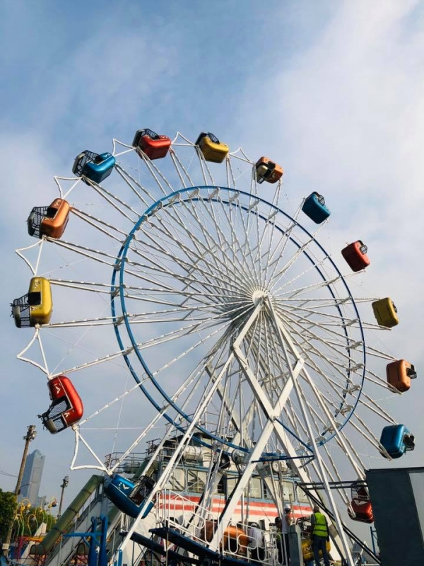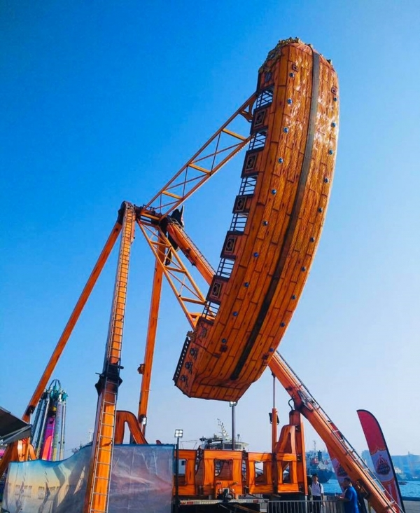在眾多遊樂設施中,最受到注目的就是這個看似摩天輪,但其實跟摩天輪有很大不同的「大港尖叫飛天輪」!8層樓高在上面感受刺激的翻轉,又能一邊欣賞高雄港景色,台灣第一次引進這項設施,想搶先體驗的不能錯過!