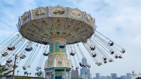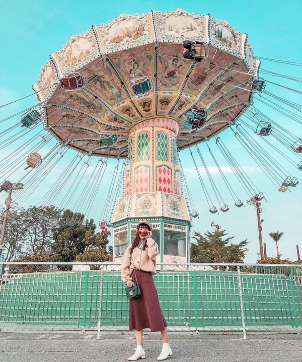 這裡是小編超級推薦的高雄景點之一!位於百貨公司的頂樓,雖然遊樂設施不多,也都小小的,但可以從高處拍到大高雄的風景,結合童趣的遊樂園回憶,拍起來真的超可愛!