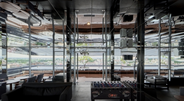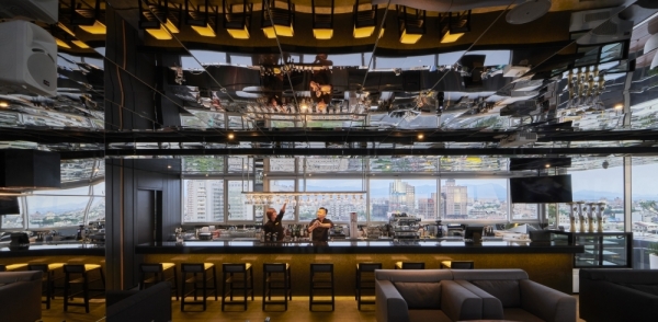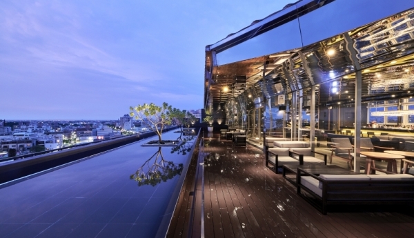 除了房間之外,位於飯店的頂樓還有酒吧!不鏽鋼鏡面環繞配上舒適的原木家具,戶外水池中的白水木大型植栽,讓人彷彿身處大自然中,愜意的坐在這邊鳥瞰嘉義市景,將璀璨的夜景盡收眼底!