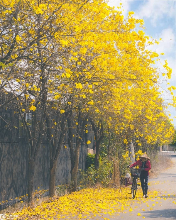 小編看到圖片的時候還在想這到底是哪裡?一整條的黃花隧道,地上也灑散了黃色花瓣,超級漂亮~