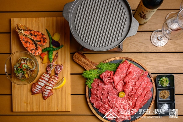 露營也可以吃的很高級,一泊4食的豪華露營套裝,完全不用煩腦吃什麼,業者提供A5和牛海鮮饗宴,包準你吃的不要不要的,不吃牛的朋友,也有新鮮溫體豬和素食可供選擇!