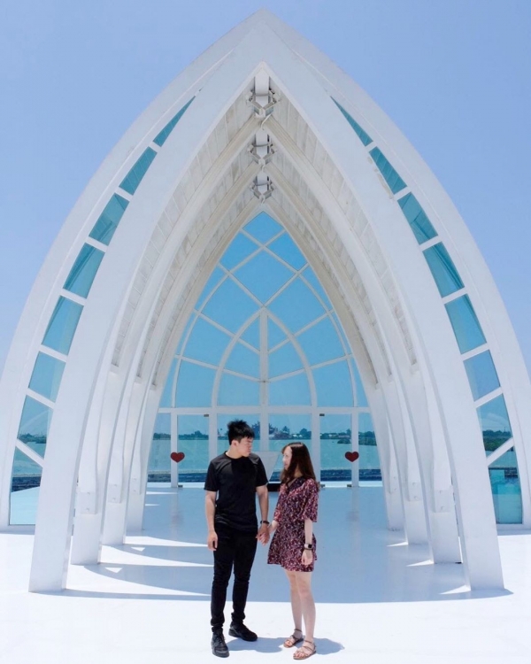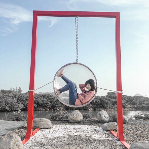 水晶教堂是台灣第一座由公家機關設計的教堂,夢幻般的場景是以婚紗攝影為主題,讓人有置身在關島的錯覺呢!除了教堂之外,還有個玻璃泡泡球可以乘坐,這邊實在是太好拍啦!
