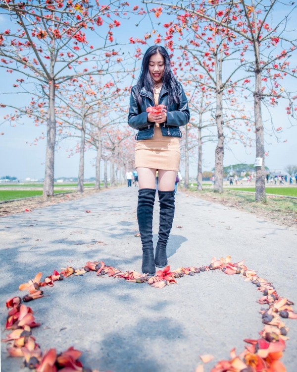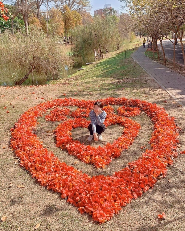 賞木棉花的地點除了白河之外,在東區的「巴克禮紀念公園」也看得到唷!每年這時候都會有人用落花排成大大的雙心讓遊客拍照打卡,真的是可愛又浪漫呢!
