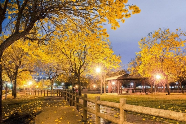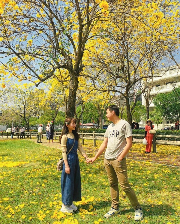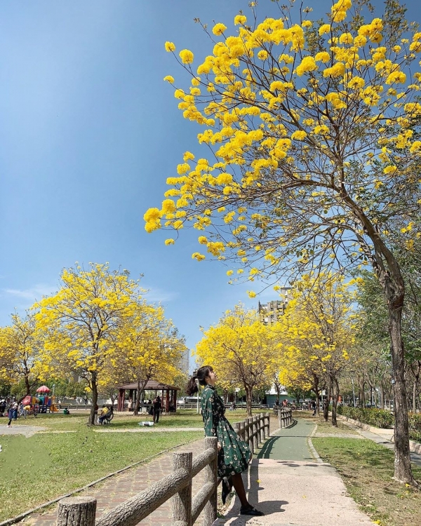 金黃綻放的風鈴木讓這邊有著全台最美公園的稱號,園區有許多風鈴木,就像一顆顆金黃棉花糖,其夢幻程度光是看照片就讓人心動,還有綠叢迷宮及其他遊樂設施可以玩!除了美到翻的公園之外,還能順遊情人橋、九號步道走走唷!