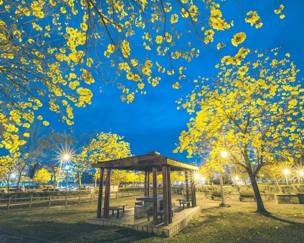 夜晚在路燈的照亮下,也是美得像一幅畫呢!坐在公園裡賞花也是非常浪漫!