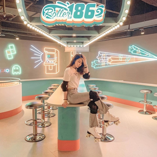 最新網美景點就在這!位於新時代購物中心裡打造出回憶裡的冰宮,不僅充滿了美式復古風情,入口處也特別設計了霓虹旋轉門,加上內部五顏六色燈飾的裝潢,讓人怎麼拍都好美啊!
