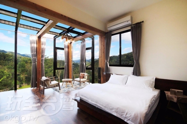 位於新北平溪半山腰上的「幸福山行」是一棟山林環繞的玻璃屋,以大片落地窗打造而成,寬敞的草坪搭配旁邊的繽紛花草,讓人不自覺沉浸於大自然的懷抱中,特別放鬆!