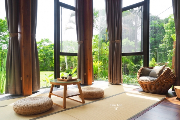 不僅窗邊是大片的落地玻璃設計,就連天花板也是!夜晚時可以愜意地坐在這邊喝茶聊天,再賞滿天星空!