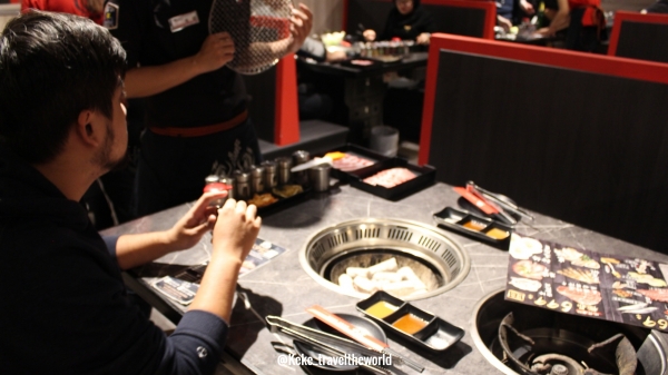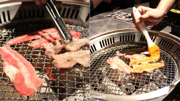 店員很貼心,會先示範怎麼烤肉,要記得認真聽才不會出錯喔!