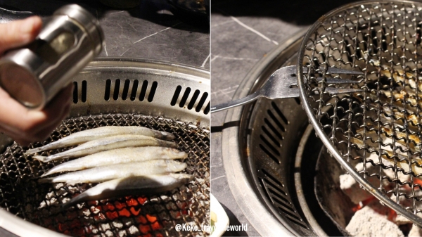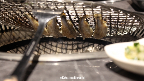 結果烤到一半的時候...燈愣!店員就這樣把柳葉魚翻過來!
