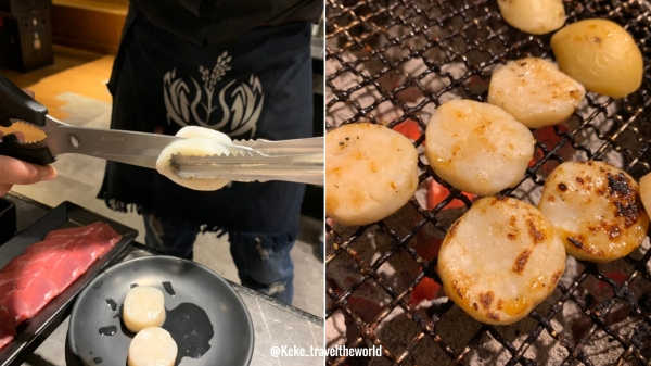 白玉貝的部分店員建議先剪過,這樣比較不怕外面烤焦裡面還沒熟