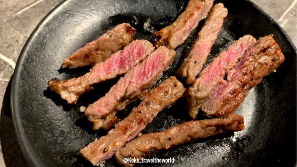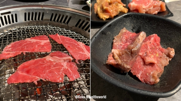 再來烤的是牛嫩肩,油花肉質軟嫩多汁,原味就很好吃囉