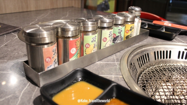有趣的是桌上擺著一整排的調味料,如果吃肉吃到膩了還可以自己調味