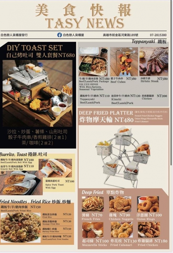 除了酒精!飲食方面有提供很多樣化的選擇!最特別的是還有「自烤吐司」這一個餐點,增加情侶來貨櫃物吃飯約會的趣味性!