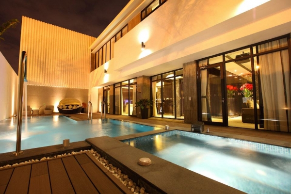 「清水漾 H Villa」清水模的簡樸外觀,搭配峇里島風格的Villa套房與私人露天泳池,眺望無盡的藍天綠地,在令人醉心的氛圍中,築起一座極致隱私的親密空間。