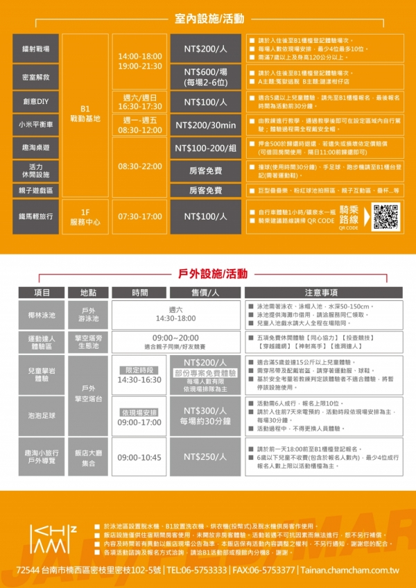 有別於傳統渡假村個人或家庭的休閒概念,趣淘漫旅「戰勤基地」是測試賓客的團隊默契和合作意識,主打「全館鐳戰」和「解謎」的生存遊戲,讓玩家發揮機智和體力,玩遍飯店每一處角落~