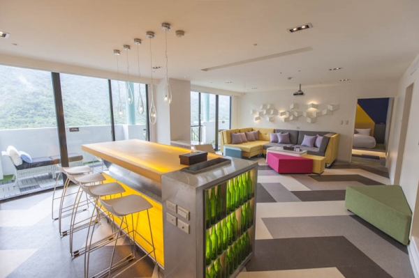 趣淘千坪的泳池庭園,包圍在綠色椰林的半山腰中,形成一幅美麗的構圖,到了夜晚氣氛反轉,加入搖滾的音樂元素為旅客注入活力,渲染青春的色彩。