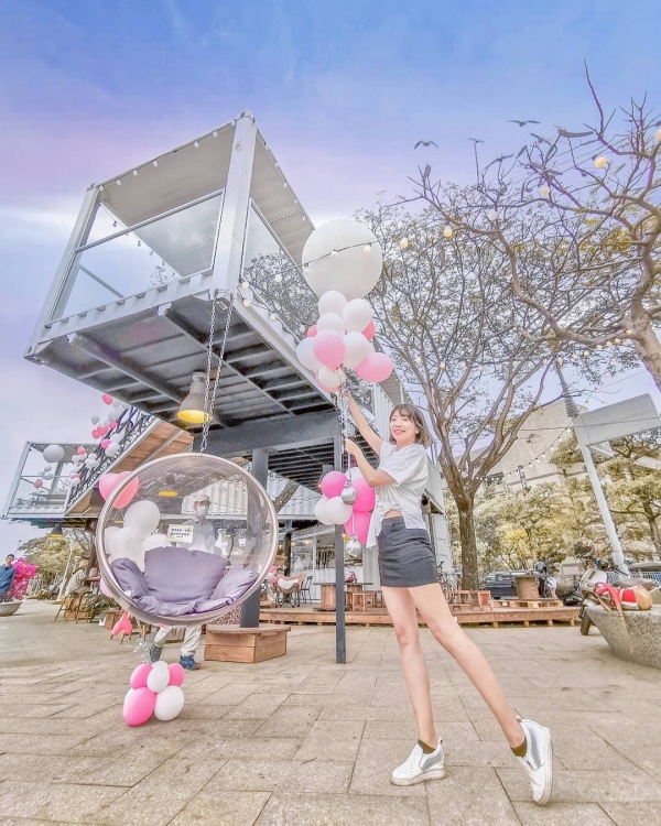 最吸睛的就是這座透明泡泡球鞦韆,絕對是少女們的最愛!到了夜晚一閃一閃的星光燈串增添唯美氛圍,不用跑遠就能在高雄市區浪漫約會啦!