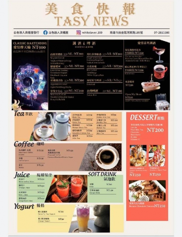 坐落於愛河河畔旁的「白色戀人貨櫃屋」是近期最新打卡景點!兩層樓高的純白貨櫃屋融合景觀餐廳的元素,空間採半開放式的設計,遊客可以平視角欣賞河畔美景,或是走上二樓遠眺更廣闊的愛河風光!