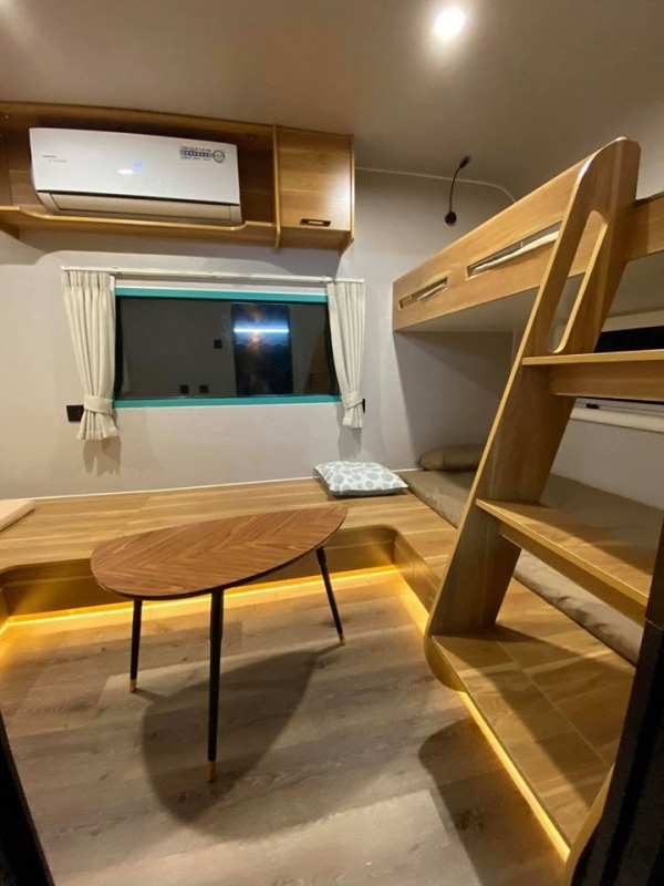 如果懶的搭帳篷的話,業者也提供露營車裝備,很適合懶人媽媽們,露營車一間可入住4個人,有空調(冷、暖氣),另外須自備睡袋(棉被)+枕頭,及個人用品, 就像住在飯店一樣舒適!!住這個最輕鬆了~~