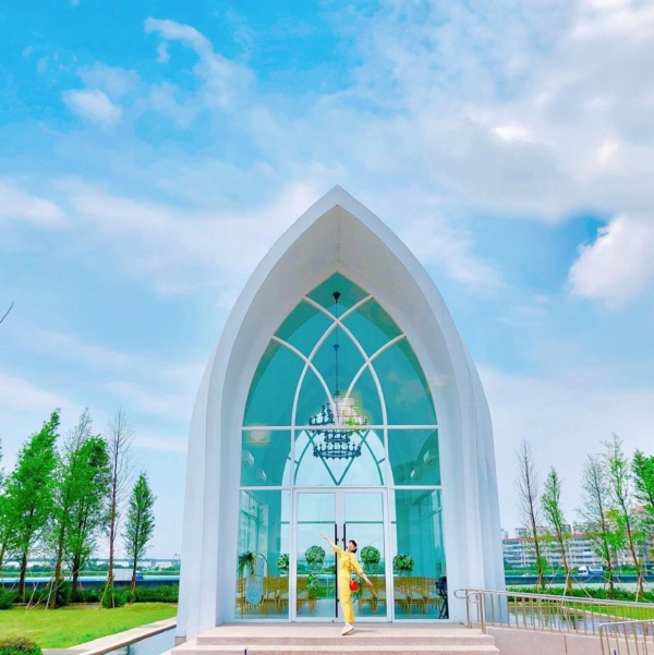 位於皇家薇庭 Royal Wedding 婚宴會館的絕美白色教堂,而且還是免費入場喔!!!甚至有人稱為【桃園版的天空之鏡】!