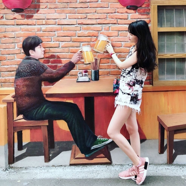 通常想到彩繪,都會以夢幻、可愛的主題為主,但是美仁里卻以古早味的臺灣風情為設計藍圖,像是傳統公共電話、水果攤、旗袍店、麵攤、柑仔店、人力黃包車等,充滿古早童趣味!
