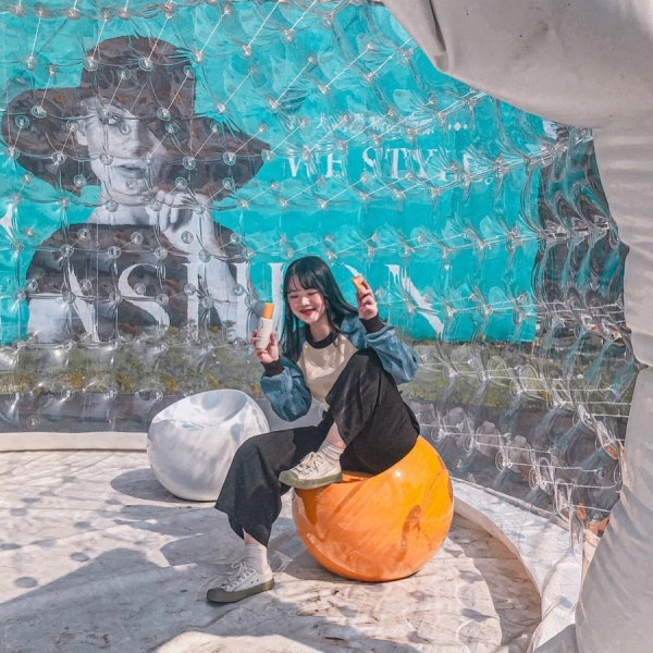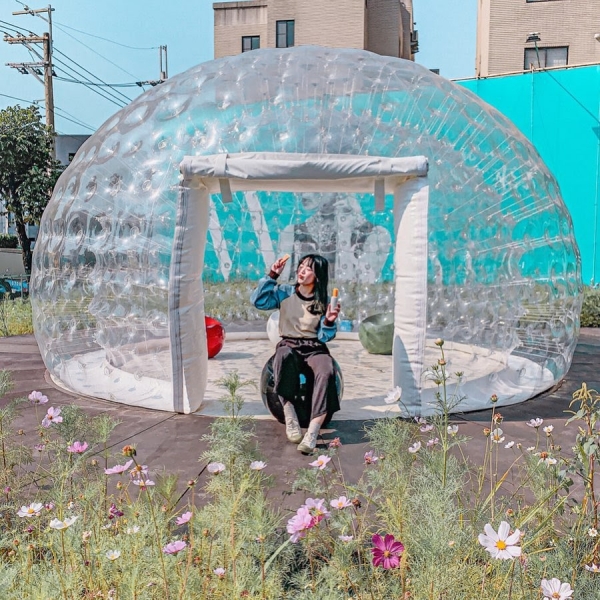到了黃昏時刻,拍出來的樣子也很漂亮呢!搭配夕陽穿透泡泡屋,讓人忍不住又多拍幾張了!!