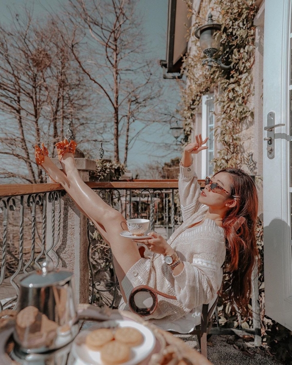 在陽台上品嘗著下午茶,欣賞著周圍的山景,渡假就是這麼放鬆~