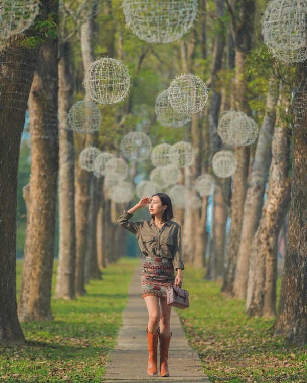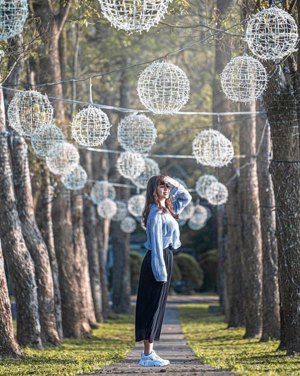 位於最美校園裡的森林步道超美,上面掛滿了一顆顆簍空燈泡,讓遊客可以徜徉綠樹草坪欣賞花燈,讓夜晚的校園更加浪漫!