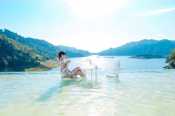 這可是每位女生夢想中的地方了吧!!!從旁邊看還以為真的坐在鯉魚潭上呢!!這麼夢幻又雅緻的地方,人生至少要來過一次吧~~