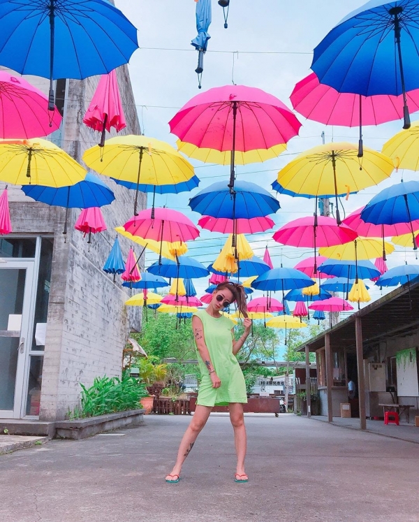 園區裡也有許多的造景可以拍照,像是入口處就有繽紛彩虹傘,經過的人都會不禁拿起相機多拍幾張照呢!