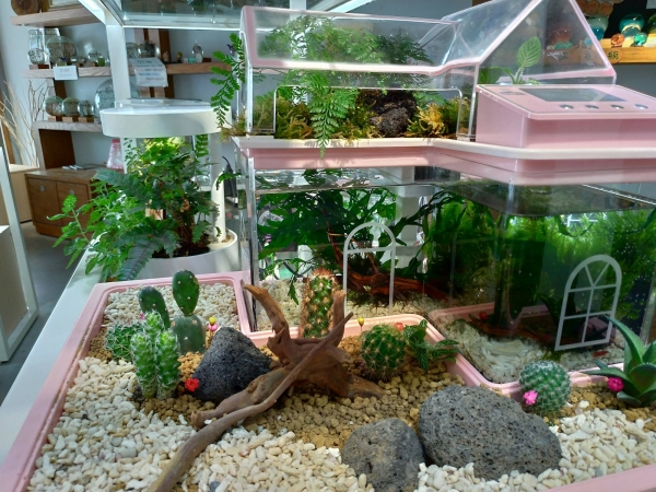 還有商品展售區,裡頭販賣了多樣的水草、多肉植物,再搭配玻璃生態瓶簡直就是藝術品!