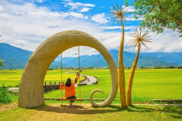 池上的一條田園小路,因拍攝了伯朗咖啡的廣告而廣受歡迎,而最矚目的就是那自然彎曲形成的【天堂鞦韆】,坐在鞦韆上便能一覽天堂路全景色,俯瞰一望無際的稻田~