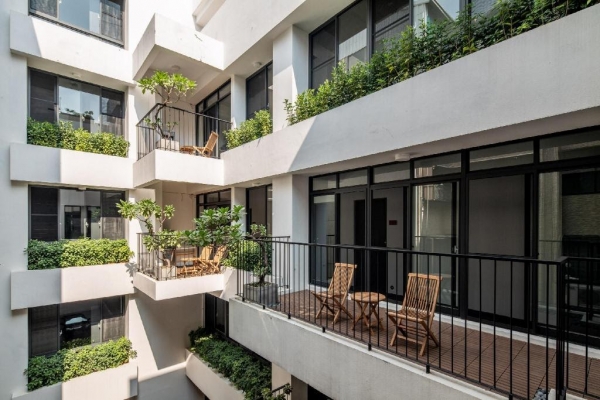 每一層樓都有露天陽台可以使用,飯店中間打通的天井讓陽光照射進來,更顯舒適,可以大口大口的呼吸芬多精,陽台也是大家來這必打卡的地方~~