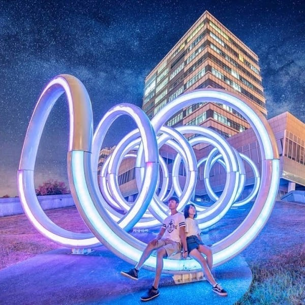 中科園區的中科工商服務大樓前有3個裝置公共藝術,這在2014年就曾是網路打卡熱門景點。地點就在中科工商服務大樓前門兩側。