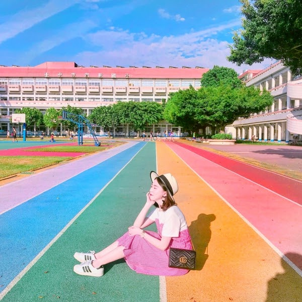 繽紛的彩虹小學,有著彩虹色的跑道和地中海風建築,看著七彩的步道心情也跟著輕快了起來,尤其夏天的陽光拍起來更是鮮豔,讓這個小學每到假日都相當熱鬧,因為拍起來實在太可愛啦!