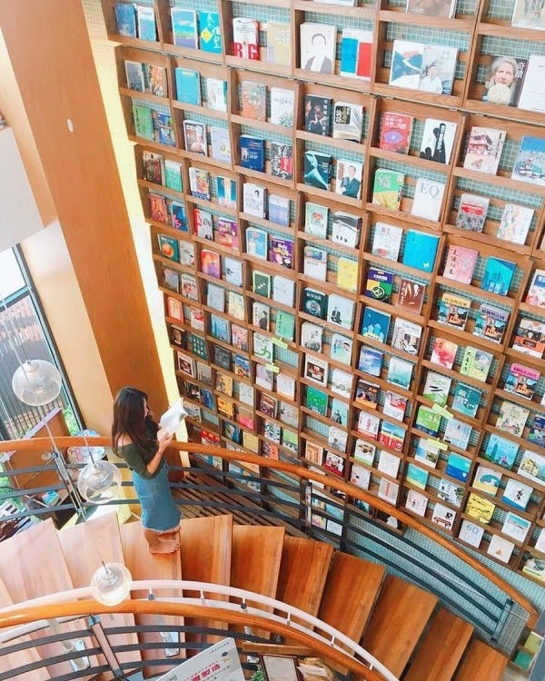 從一樓一職延伸到頂部的書牆,擺滿了書籍看起超壯觀,來這裡拍張照直接氣質爆表!就算不愛看書的人,也很難不被這麼美的地方給迷助吧!小文青必訪的烏日景點非這裡莫屬!
