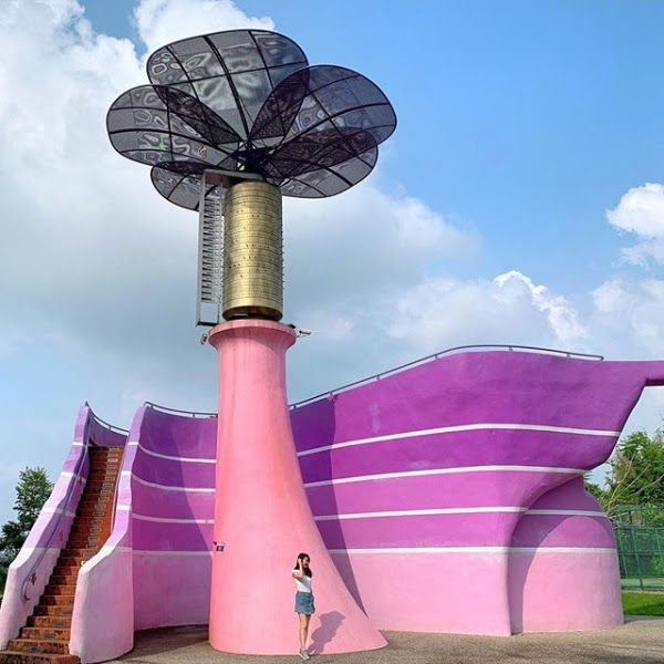 其實新社還有一個相當好拍的地標「星願紫風車」,其命名由來正是因為新社是紫斑蝶的故鄉,大面積的紫色漸層牆與會隨風轉動的巨型花朵,配上悠揚輕音樂,完全是一個充滿浪漫幸福的紫色天地!