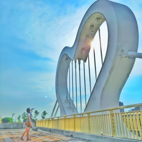 橋上的燈座像隻展翅飛舞的蝴蝶,白天時陽光打落在牆上,像蝴蝶在微笑,夜晚搭配當光的變化,有如蝴蝶在飛舞,實在太漂亮啦!