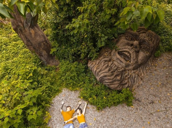 位於台中市雪山坑的巨人遺跡,原是雪山花園農場,這巨人則是當時園區內的巨型雕塑,在廢棄了20年後,才形成只露出頭,巨大手的聳動面貌。