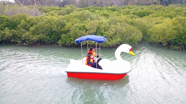 看著這麼一大片湖就很想坐船出游對吧~真的可以坐著天鵝小船聽園區人員進行生態導覽喔!!!有沒有台版威尼斯的感覺啊~不用出國就可以體驗船上導覽~