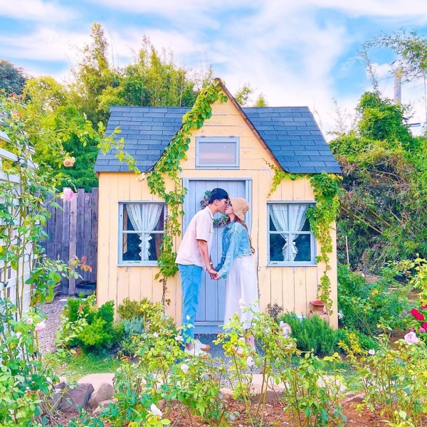 來到桃園中壢的玫瑰山谷,圍繞在一片玫瑰花園中有一個小木屋,就像歐洲莊園一樣~可以用餐又可以拍照走走,好夢幻啊!!!