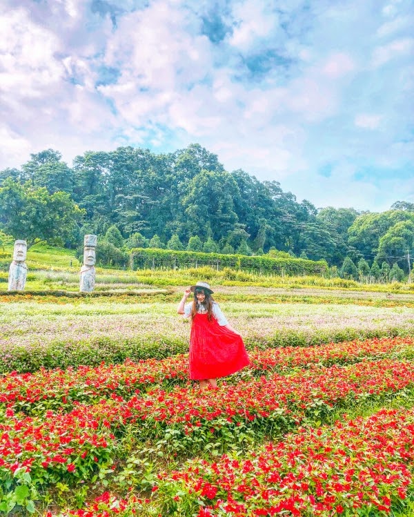 桃園大溪最熱門的景點就是大溪花海農場啦~園區占地面積廣大,有一大片美麗繽紛的花海,還有最夯的巨石像可以拍照打卡~~